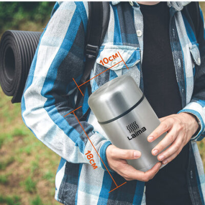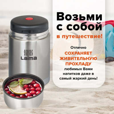 Термос LAIMA универсальный с широким горлом предназначен для хранения напитков, первых и вторых блюд.