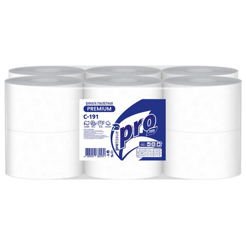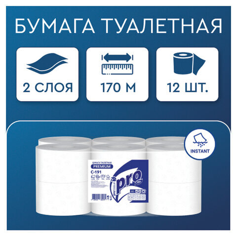 Бумага туалетная 170 метров, PROtissue (T2) PREMIUM, 2-слойная, белая, КОМПЛЕКТ 12 рулонов, С191