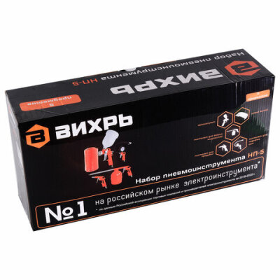 Набор пневмоинструмента ВИХРЬ НП-5, максимальное давление 12 атм, насадки 5 шт., 175 л/мин, 74/3/5