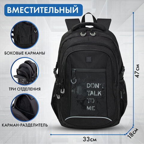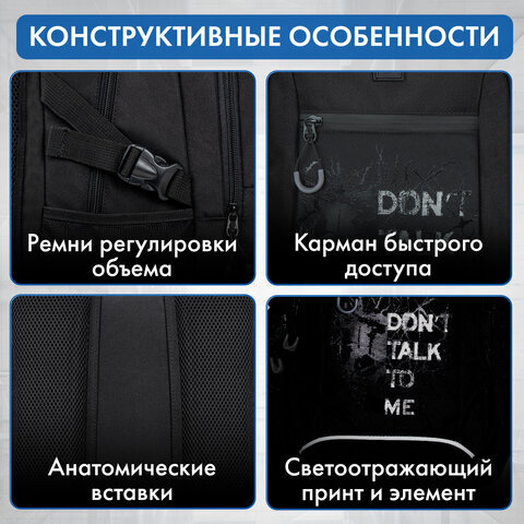 Рюкзак BRAUBERG CONTENT универсальный, 3 отделения, светоотражающий принт, "Skeleton", 47х33х18 см, 272567