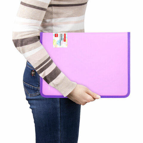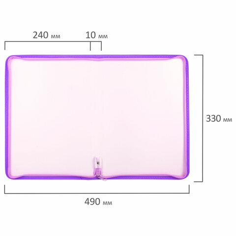 Папка объемная на молнии пластиковая BRAUBERG PASTEL, А4, 330х240 мм, 600 мкм, цвет лиловый, 271971