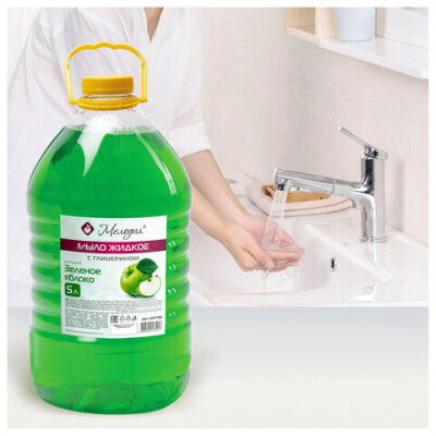 Мыло жидкое 5 л, МЕЛОДИЯ "Зеленое яблоко", с глицерином, ПЭТ, 604788