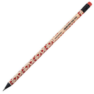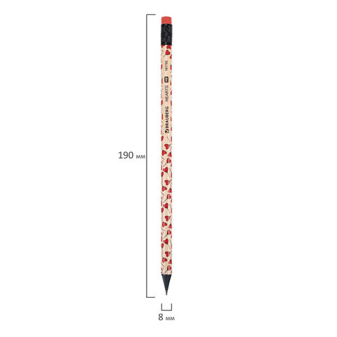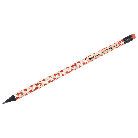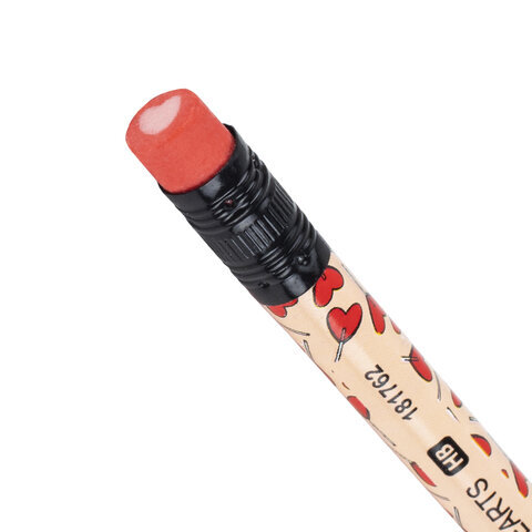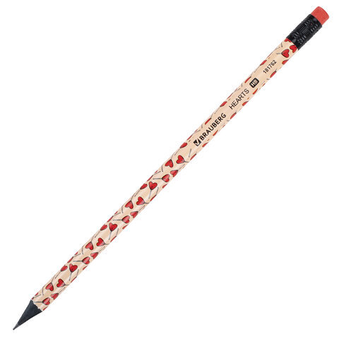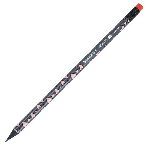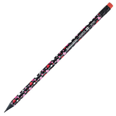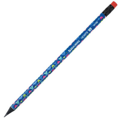 Карандаш чернографитный BRAUBERG "HEARTS", 1 шт., HB, с ластиком, корпус ассорти, 181762