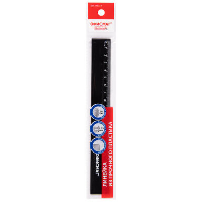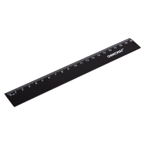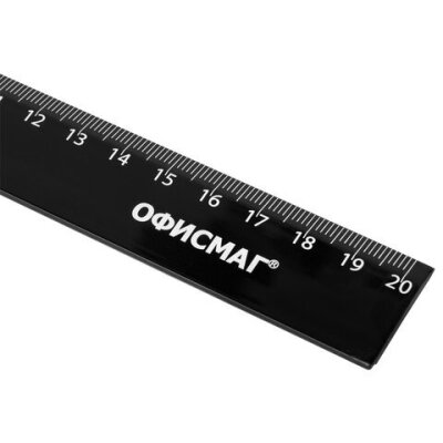 Линейка пластиковая 20 см, ОФИСМАГ, черная, пакет, 210777