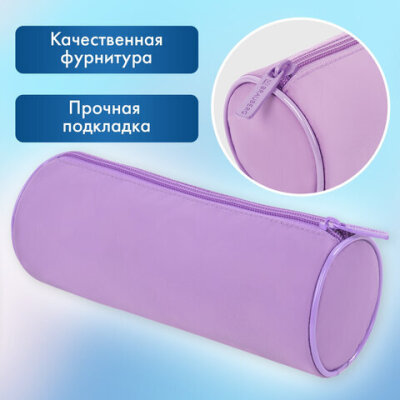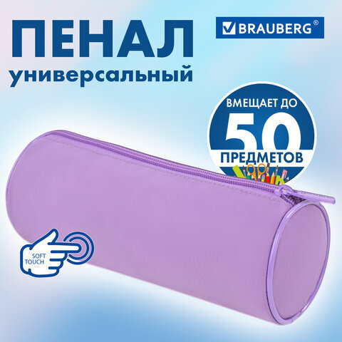 Пенал-тубус BRAUBERG, с эффектом Soft Touch, мягкий, пастельно-фиолетовый, 22х8 см, 272301