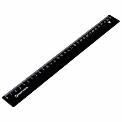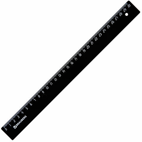 Линейка пластик 30 см, BRAUBERG, черная, 210612