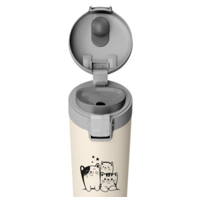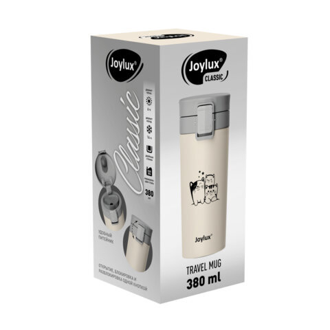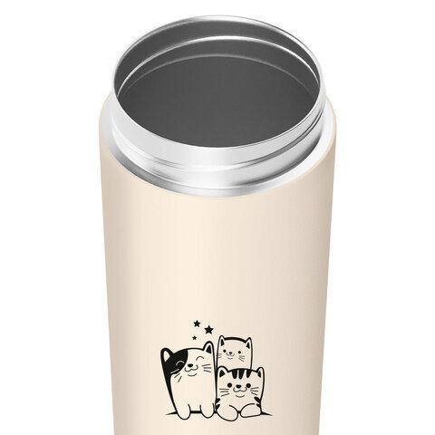 Термокружка 380 мл JOYLUX (ДЖОЙЛЮКС) CLASSIC CAT, нержавеющая сталь SUS304, бежевый с принтом, 700272
