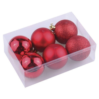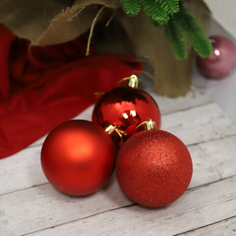 Шары ёлочные 6 шт., 8 см, "Trio", пластик, КРАСНЫЕ (глянец, матовый, глиттер), ЗОЛОТАЯ СКАЗКА, 590873