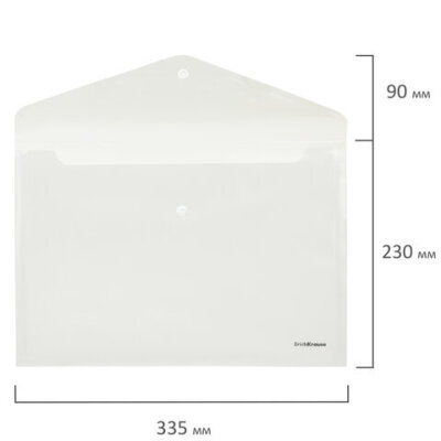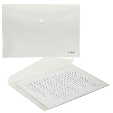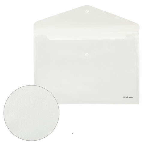 Папка-конверт на кнопке ERICH KRAUSE формата А4 сделана из высококачественного прозрачного пластика с текстурой поверхности "апельсиновая корка", на которой не видно отпечатков пальцев и мелких царапин.