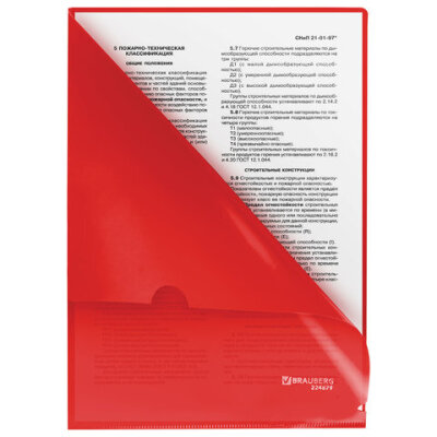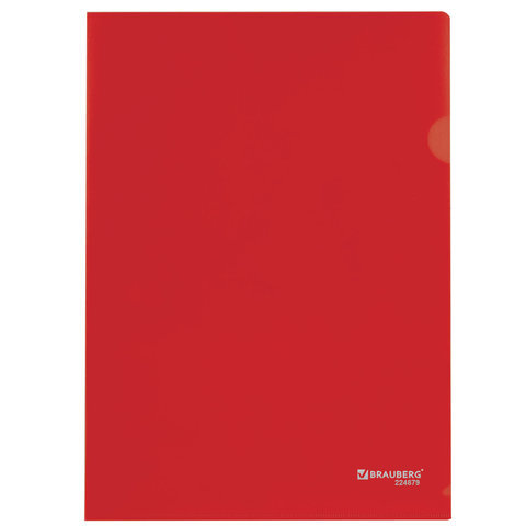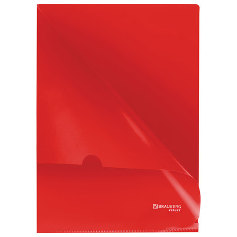 Папка-уголок жесткая, непрозрачная BRAUBERG, красная, 0,15 мм, 224879