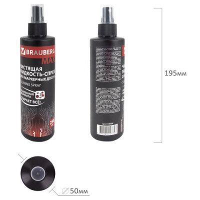 Чистящая жидкость-спрей BRAUBERG предназначена для очистки поверхности маркерных досок.