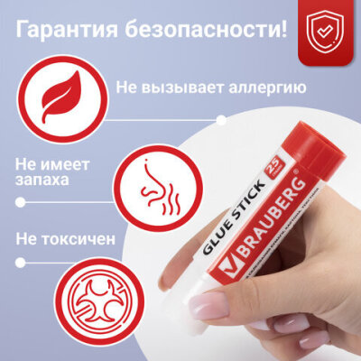Клей-карандаш BRAUBERG гарантирует надежное склеивание бумаги, картона и фотобумаги. Идеально подходит для офиса, дома и школы.
