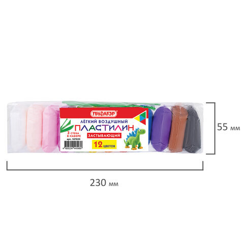 Пластилин супер лёгкий воздушный застывающий 12 цветов, 110 г, 3 стека, ПИФАГОР, 107039
