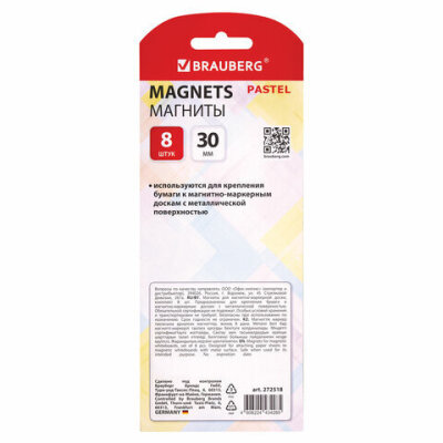 Магниты BRAUBERG "PASTEL" в нежных пастельных оттенках – это идеальное решение для надёжного крепления листов бумаги на магнитных досках, витринах, флипчартах и холодильниках.