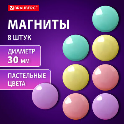Магниты 30 мм, НАБОР 8 шт., BRAUBERG "PASTEL", блистер, 272518