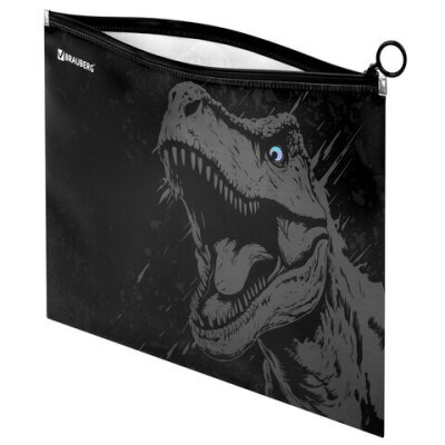 Папка для тетрадей BRAUBERG А4, 1 отделение, пластик, на zip-lock молнии, "Scary dino", 273321