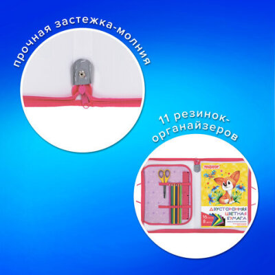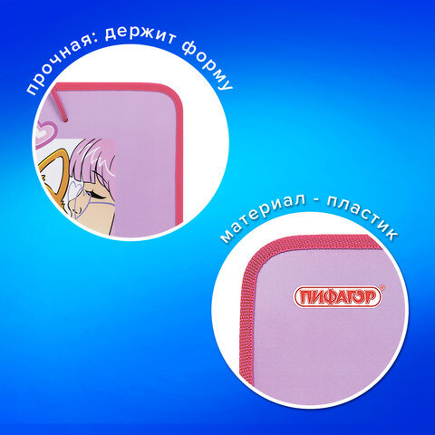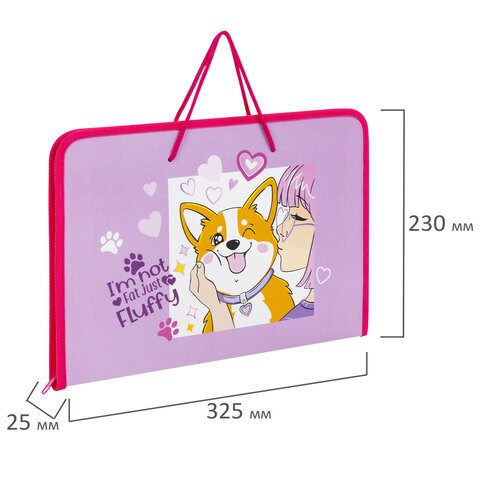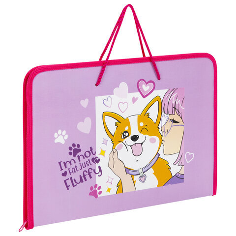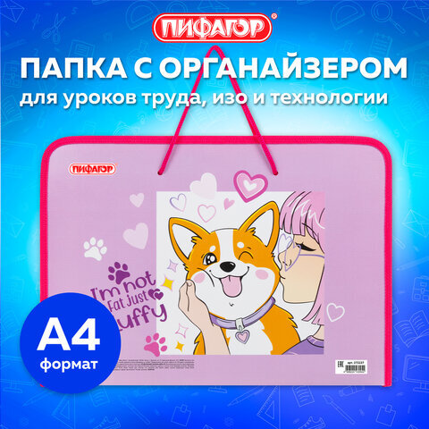 Папка для труда на молнии с ручками ПИФАГОР А4, 1 отделение, пластик, органайзер, "Fluffy akita", 272227