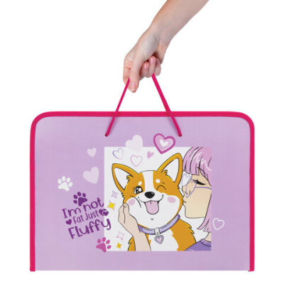 Папка для труда ПИФАГОР А4 "Fluffy akita" с ручками предназначена для хранения и переноски тетрадей, альбома для рисования, цветной бумаги, картона и прочих бумаг.
