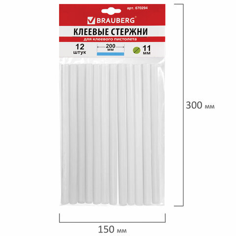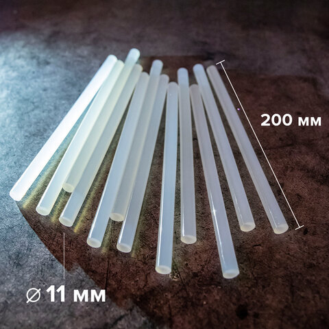 Клеевые стержни, диаметр 11 мм, длина 200 мм, прозрачные, комплект 12 шт., BRAUBERG, европодвес, 670294