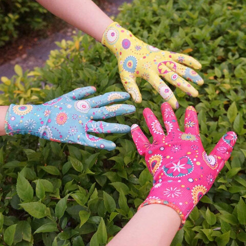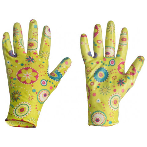 Садовые перчатки с покрытием – незаменимый помощник для работы в саду, дома и огороде. Перчатки с ярким принтом ассорти – это стильная и надёжная защита рук. Перчатки имеют красивое нейлоновое основание и тонкий слой нитрилового покрытия.