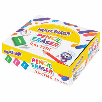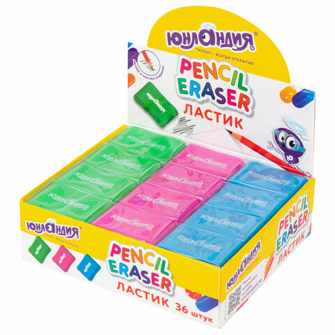 Ластик эргономичный ЮНЛАНДИЯ "СУПЕР", 33х21х10 мм, яркие цвета ассорти, 272667