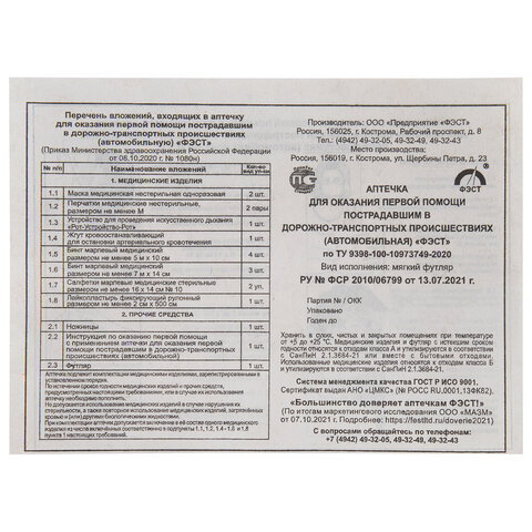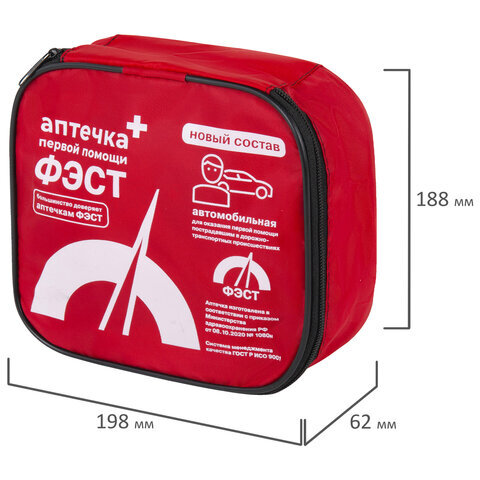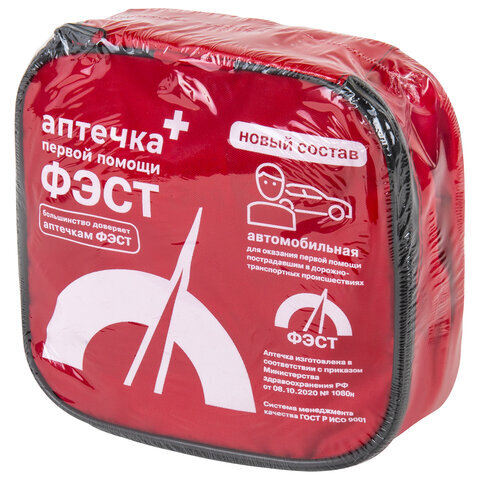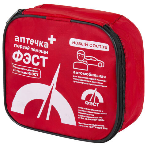 Аптечка первой помощи автомобильная ФЭСТ, текстильный футляр, состав - по приказу № 1080н, 2126