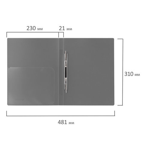 Папка с металлическим скоросшивателем и внутренним карманом BRAUBERG "Диагональ", серебристая, до 100 листов, 0,6 мм, 221353