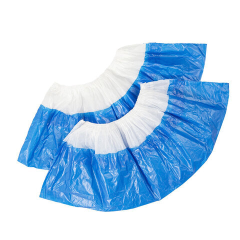 Бахилы двойные, КОМПЛЕКТ 1900 шт. (950 пар), СТАНДАРТ, 39х14 см, 28 мкм, 2,6 г, бело-синие, ELEGREEN, ПНД-7/7/1р-Б-С