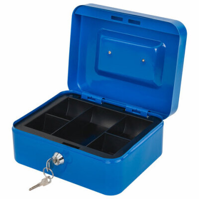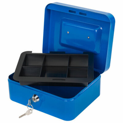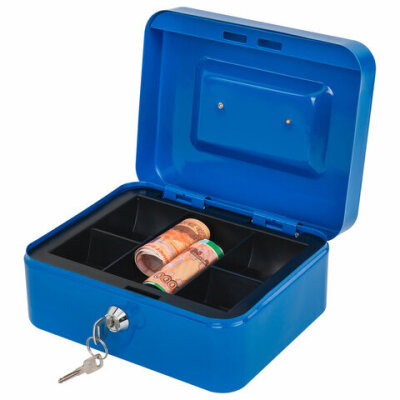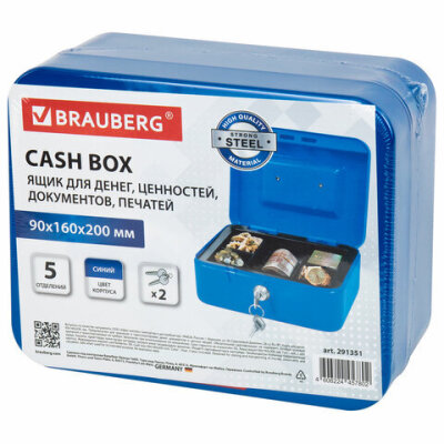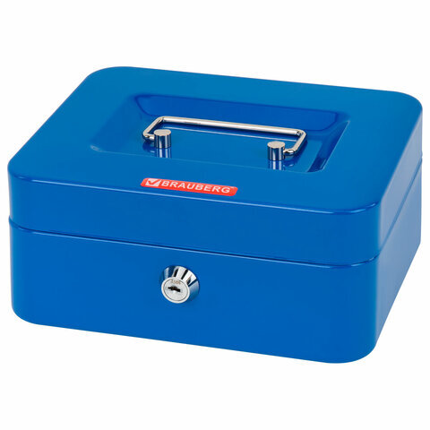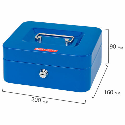 Ящик для денег, ценностей, документов, печатей, 90х160х200 мм, ключевой замок, синий, BRAUBERG, 291351