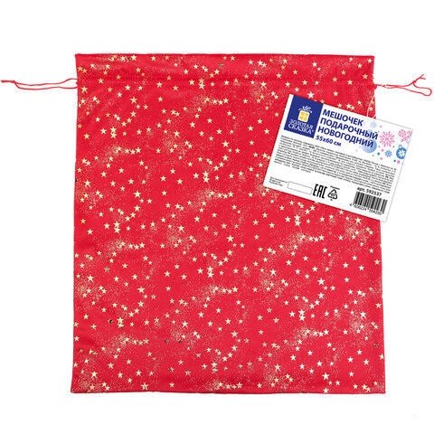 Подарочный мешок (1 штука) новогодний, 55х60 см, "Зимнее небо", вельвет, фольга, ЗОЛОТАЯ СКАЗКА, 592537