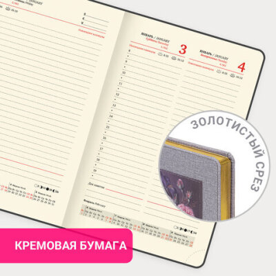 | Особенности | закладка-ляссе, комбинированная обложка, перфорация уголков, скругленные углы, справочная информация |
