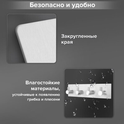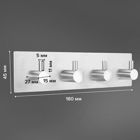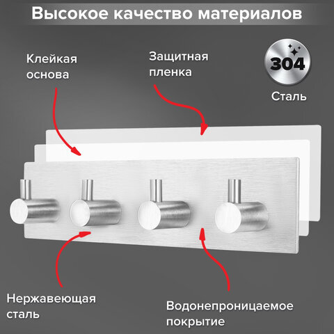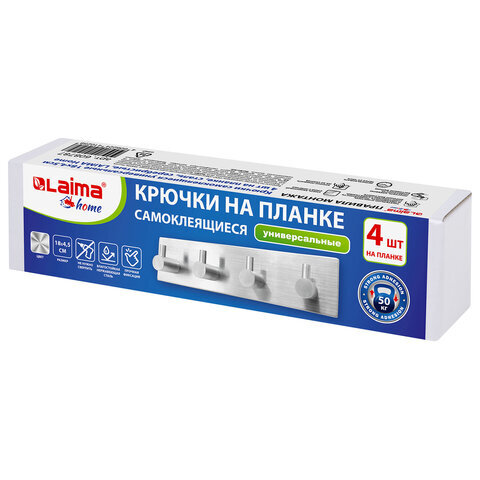 Крючки самоклеящиеся универсальные 18х4,5 см, 4 шт. на планке, сталь, серебристые, LAIMA Home, 608787