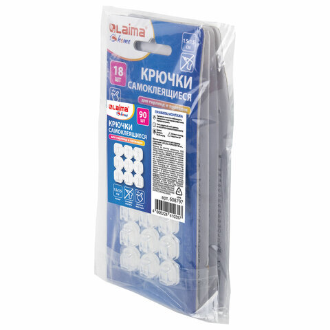 Крючки самоклеящиеся для гирлянд и проводов 1,5х1,5 см, КОМПЛЕКТ 90 шт., LAIMA Home, 608797