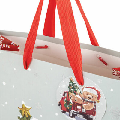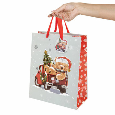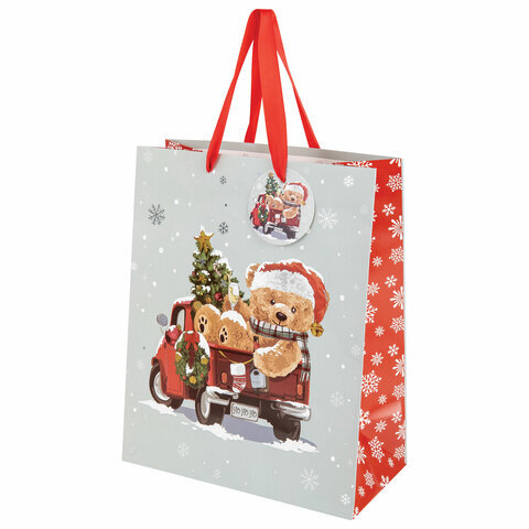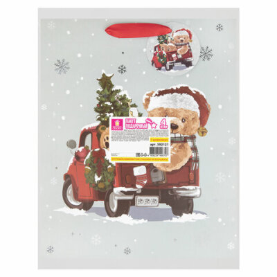Подарочный новогодний пакет (КОМПЛЕКТ 4 штуки) "Новогодний мишка" ЗОЛОТАЯ СКАЗКА – отличное решение для упаковки любого презента, которое позволит с легкостью и со вкусом оформить выбранный подарок.