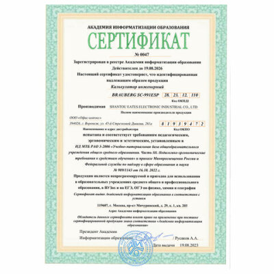• Непрограммируемый инженерный калькулятор BRAUBERG SC-991ESP в выполняет выполняет все основные вычисления, которые понадобятся школьникам на экзаменах и контрольных работах. Сертифицирован для использования на ЕГЭ и ОГЭ по физике, химии, географии.