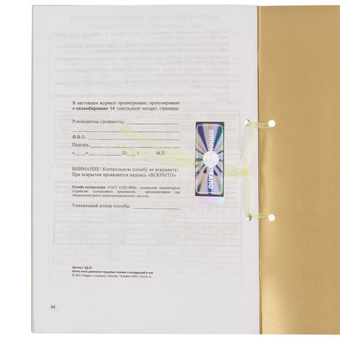 | Тип скрепления | скрепка и опломбирование номерной пломбой |
