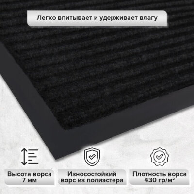Коврик ДОРОЖКА 0,9х10 м, ЧЕРНЫЙ, влаго-грязезащита, 430 г/м2, ребристая, LAIMA EXPERT, 701042