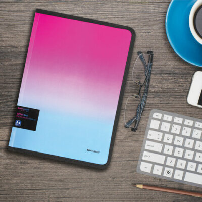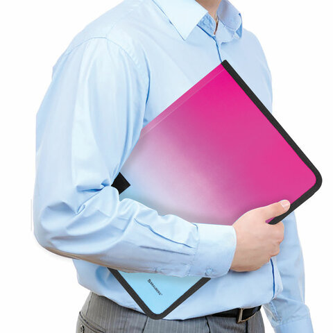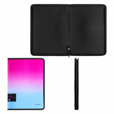 Папка объемная на молнии пластиковая BRAUBERG "Grade", А4, 330х240 мм, 600 мкм, розово-голубой градиент, 271975