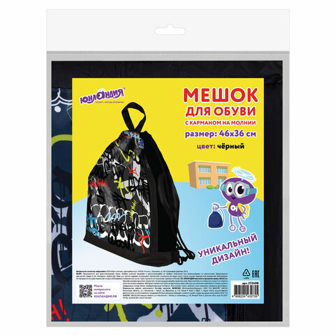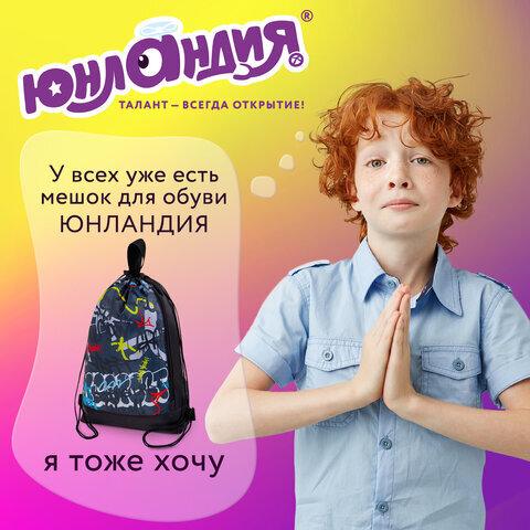 Мешок для обуви ЮНЛАНДИЯ с ручками, боковой карман на молнии, 46х36 см, "Graffiti", 272408