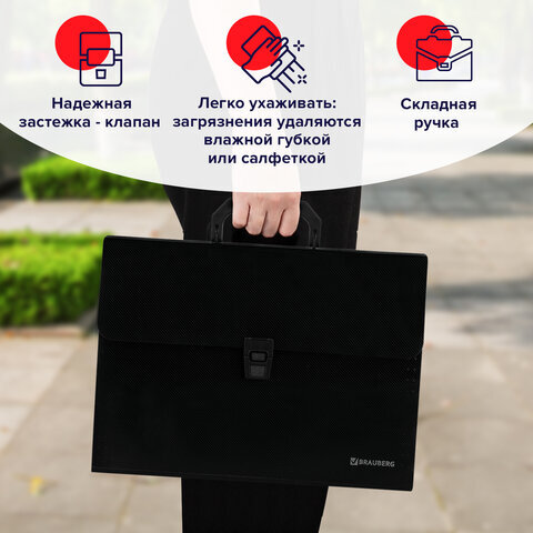Папка-портфель пластиковая BRAUBERG А4 (332х245х35 мм), 13 отделений, фактура диагональ, черная, 221375