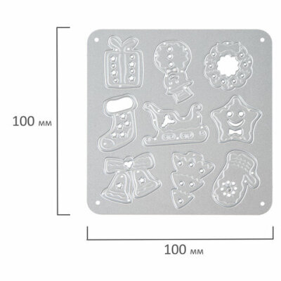 Ножи "Новый год" для Машинки для вырубки и тиснения ОС-5, 10 штук, 100х100 мм, ОСТРОВ СОКРОВИЩ, 663827, 861-011