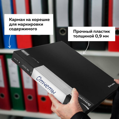 Папка 100 вкладышей BRAUBERG стандарт, черная, 0,9 мм, 221610