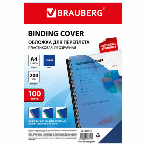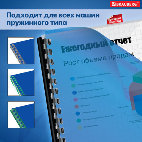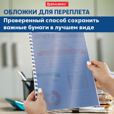 Пластиковые обложки BRAUBERG придадут документам эстетичный внешний вид и защитят от повреждений. Предназначены для переплета документов брошюровщиком с помощью пластиковых и металлических пружин.