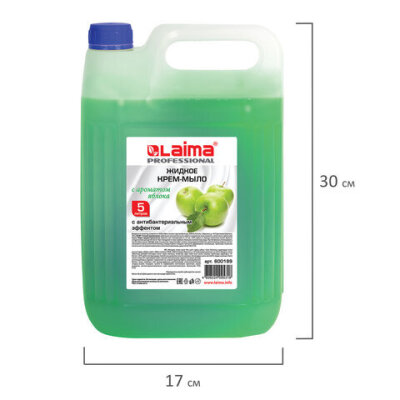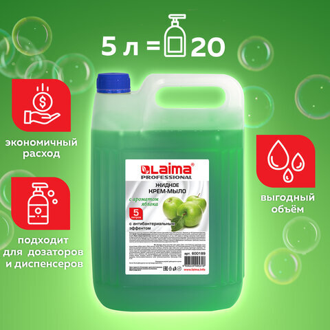 Мыло-крем жидкое 5 л, ЛАЙМА PROFESSIONAL "Яблоко", с антибактериальным эффектом, 600189