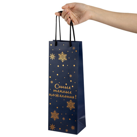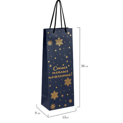 Пакет подарочный (1 шт.) новогодний, 13x9x36 см, "Bottle #2", голография, ассорти, ЗОЛОТАЯ СКАЗКА, 592429