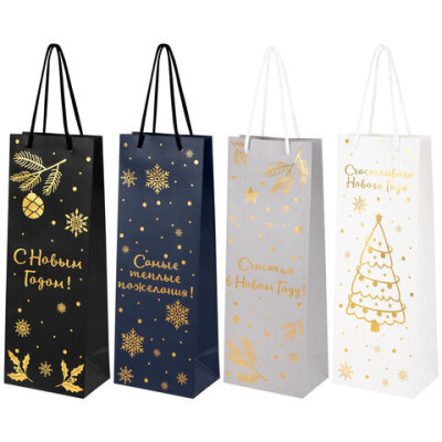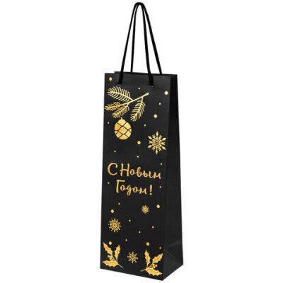 Подарочный новогодний пакет "Bottle #2" ЗОЛОТАЯ СКАЗКА – отличное решение для упаковки любого презента, которое позволит легко и со вкусом оформить выбранный подарок.