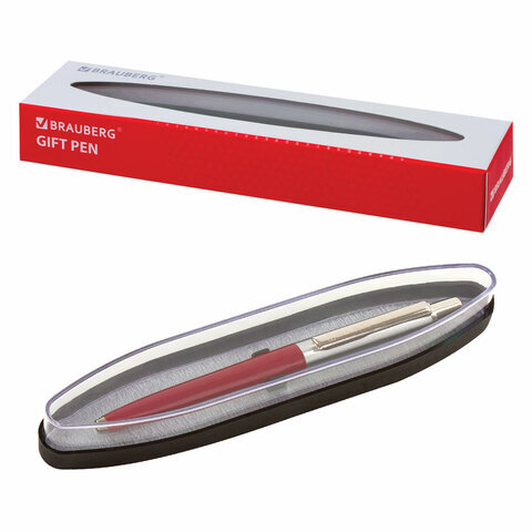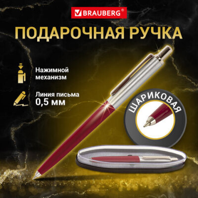 Ручка подарочная шариковая BRAUBERG Soprano, СИНЯЯ, корпус серебристый с бордовым, 0,5мм, 143485