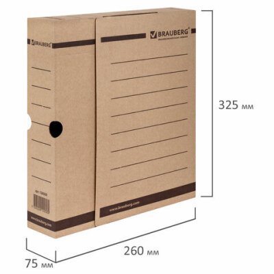 Архивный короб BRAUBERG с клапаном незаменим для организаций, работа которых сопряжена с обработкой большого объема бумажной документации: налоговые инспекции, бухгалтерии, учебные заведения, паспортные столы, страховые компании, банки и т.д.