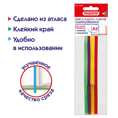 Закладки-ляссе ПИФАГОР "РАДУГА" - одни из самых удобных закладок для учебников, школьных пособий, книг, тетрадей и т.д., сочетающие в себе как практическую, так и декоративную функции.