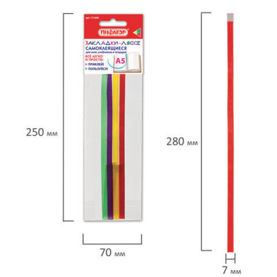 Закладки-ляссе "РАДУГА" для книг А5 (длина 28 см) ПИФАГОР, клейкий край, 4 ленты, 111648